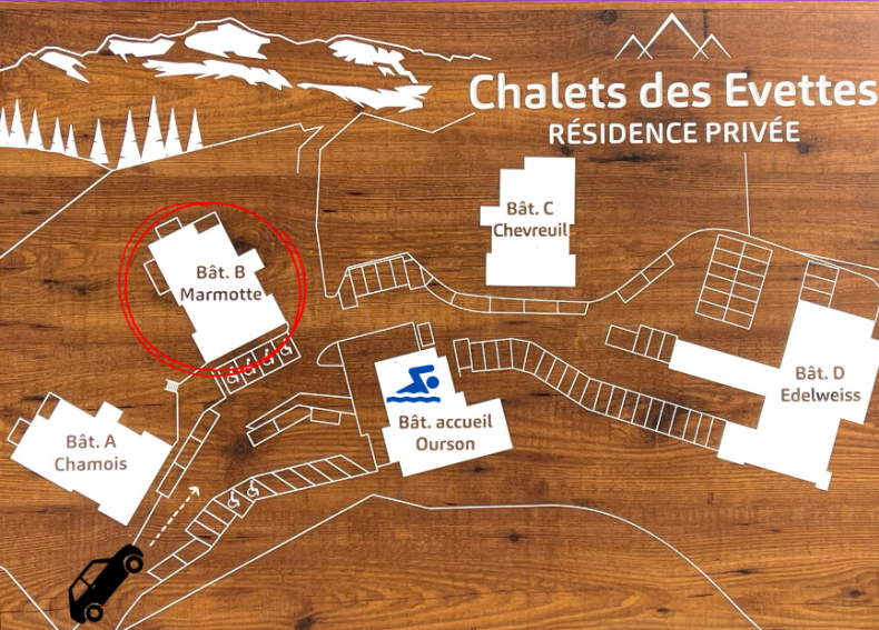 Les Chalets des Evettes residence with swimming pool is located at the foot of the Espace Diamant slopes and ski school. Village center 3km away.