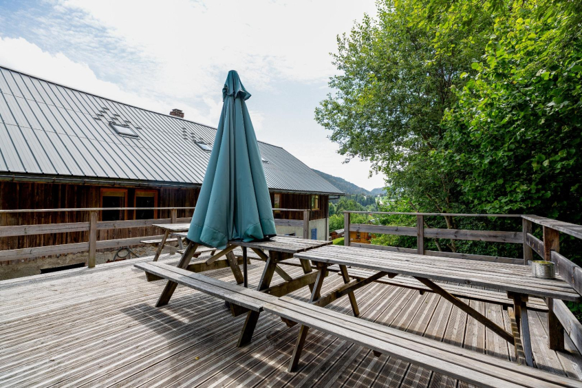 Le logement possède une terrasse, avec tables, accessible par l’extérieur du bâtiment (généralement non dégagée en hiver) et 1 petit balcon en façade sud, avec très belle vue sur Saint Nicolas la Chapelle