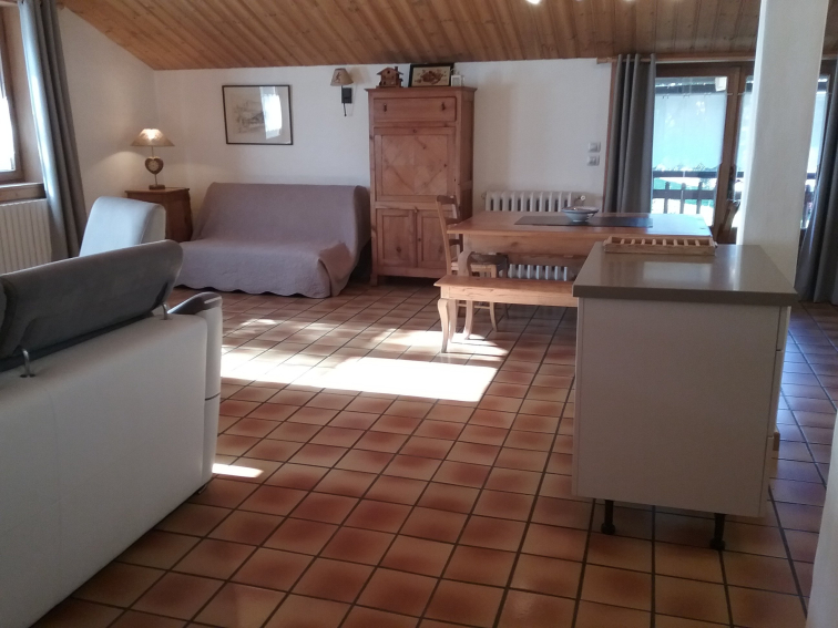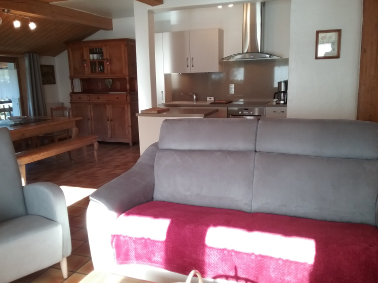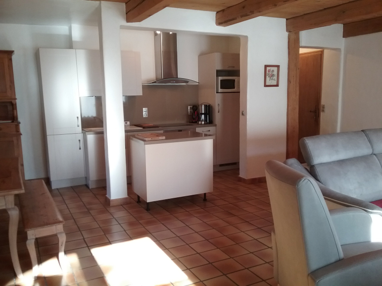Coin salon, coin repas, coin cuisine aménagée (lave vaisselle, plaque induction, hotte, micro onde, four, réfrigérateur), coin couchage (bz en 140x190), volets