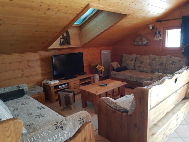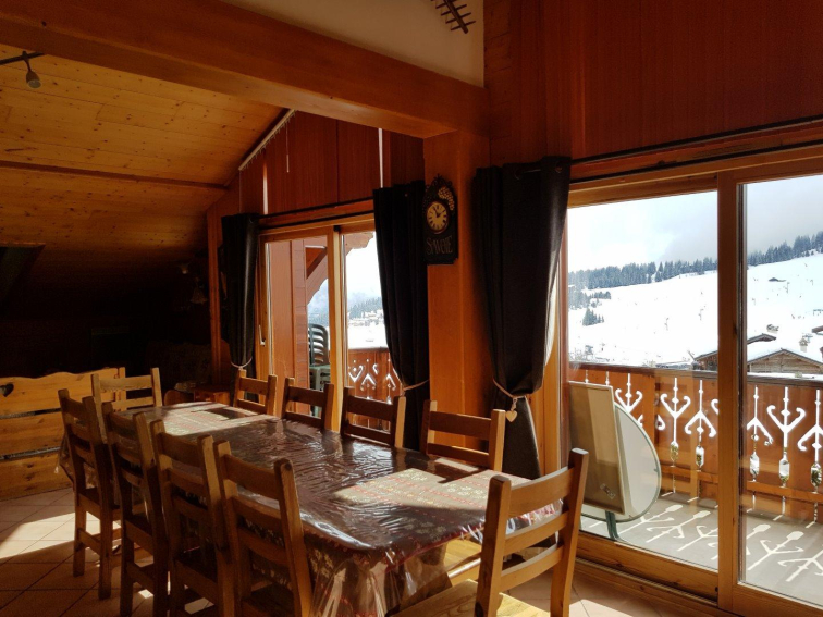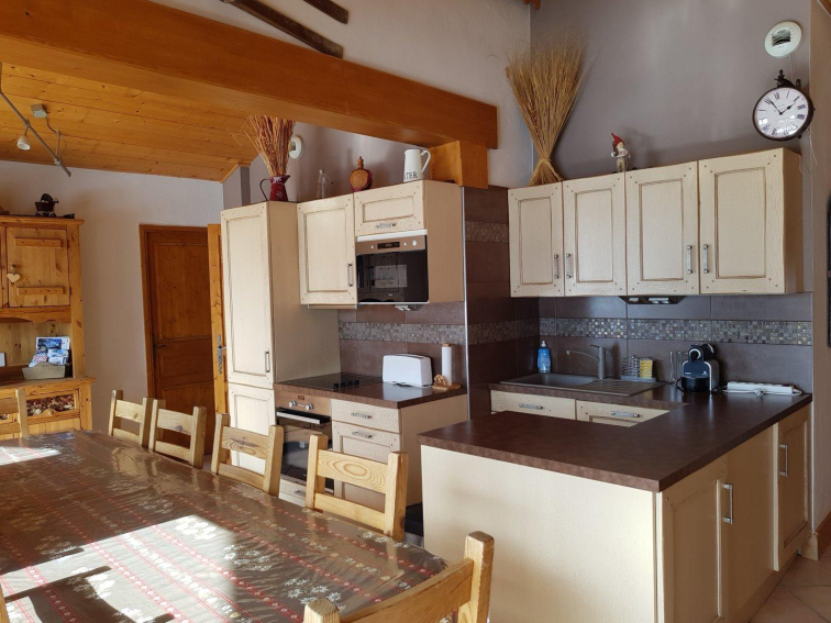 Appartement au 1° étage d'un petit chalet comprenant 3 appartements. Grand balcon plein sud, vue dégagée sur Bisanne et Pierra Menta. Au bord des pistes, à côté de l'école de ski et du centre sportif. Décoration soignée type montagne. 5 chambres, 2 salles de bain et 2 toilettes séparés. Idéal pour 10 personnes, 2 casiers à ski, 2 places de parking couvert et 1 place de parking aérien privé.