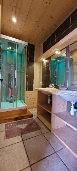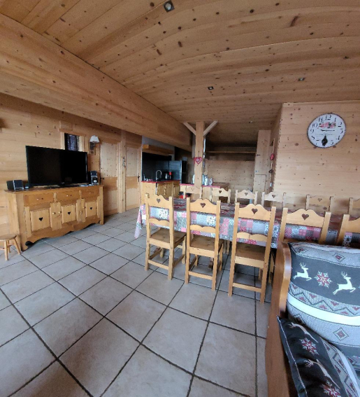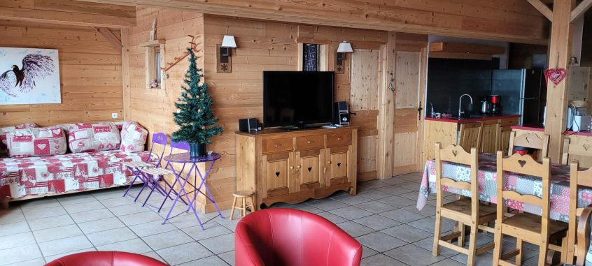 Appartement de 120 m², décoration tout bois. Vous y serez comme dans un chalet, de grandes baies vitrées donnant une belle luminosité, 3 chambres lits doubles, 1 chambre avec 4 lits indépendants, 1 chambre avec 2 lits indépendants, 2 salles de bain avec 2 lavabos et douches, 2 WC indépendants, cuisine équipée îlot central, table pouvant recevoir 12 personnes, grand salon .Balcon de 5mx1,2m - placard à skis à l'entrée de l'appartement. Situé face aux alpages de Bisanne l'été et donc des pistes l'hiver. Vue sur la vallée du Beaufortain, à 100m des départs des écoles de skis, 1 route à traverser devant l'appartement pour accéder aux pistes, proche de tous commerces. TV .Tarifs préférentiel pour la location de vos ski chez STARSKI Sport, au pied de l'appartement, directement au magasin. Vous bénéficierez de 15 % de réduction. Renseignement directement auprès du magasin.