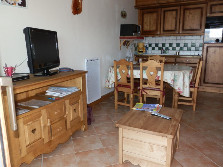 Deux chambres ,7 couchages; salle de bains, wc indépendant, cuisine équipée , salon donnant sur terrasse plein sud avec vue sur la vallée du beaufortain.