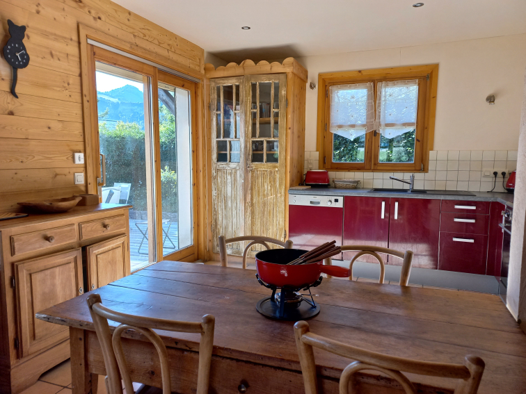 Sa situation est idéale au coeur de la station-village de Notre Dame de Bellecombe, au calme (route secondaire) exposé au sud avec vue dégagée sur les montagnes, l’église et la patinoire (terrain de pétanques en été). Le chalet est entouré d’un jardin clos sécurisant, flanqué d’une terrasse en rez de jardin, côté cuisine.