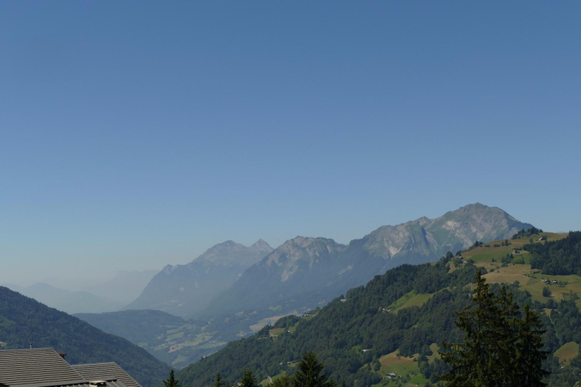appartement très lumineux dans chalet (1er étage), situé à 250 m des remontées mécaniques et des commerces. Très calme, tout confort. Entrée indépendante. Grande terrace face à la chaîne des Aravis. Vue splendide. Garage privé et couvert. Local à skis privé. Deux salles de douches, deux toilettes. Cuisine super équipée : frigo avec compartiment congélateur, table de cuisson en vitrocéramique, four, four micro ondes. Lave-vaisselle. Lave-linge. Une chambre avec un lit double, une chambre avec un lit double et deux lits superposés, un canapé-lit dans le salon , un lit pliant pour bébé, un siège pour bébé, un poste de télévision.