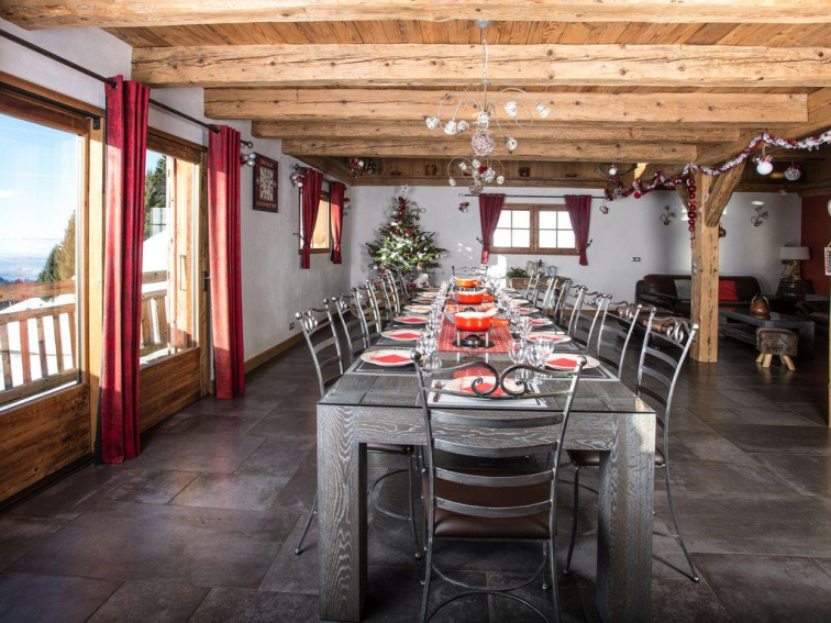 Superbe chalet avec vue panoramique sur les montagnes pouvant accueillir 15 adultes dans un grand confort avec ses 7 chambres équipées de salle de bain et toilettes dont une masteroom à l'étage. Ensoleillé du matin au soir celui-ci dispose d'une terrasse couverte avec vue sur les montagnes et du soleil levant.