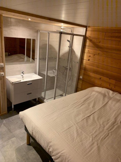 - 4 chambres composées chacune d'1 lit double ou 2 lits simples (80x200 x2), 1 coin douche, lavabo