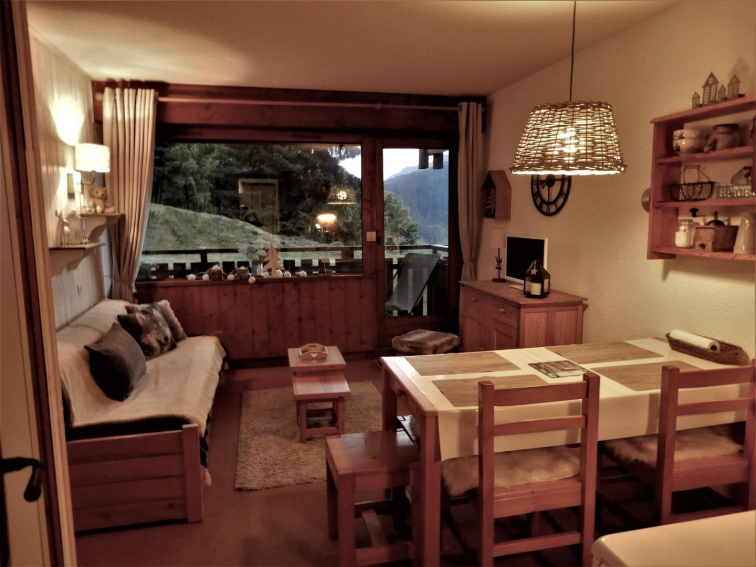 JOLI STUDIO CABINE FONCTIONNEL ET CHALEUREUX AVEC OUVERTURE SUR L'EXTERIEUR POUR LES ENFANTS (RARE EN STATION) - BALCON ABRITE SOUS LOGGIA AVEC PORTILLON DONNANT SUR LE JARDIN DE LA RESIDENCE - UN VRAI BONHEUR POUR LES PETITS COMME LES GRANDS !