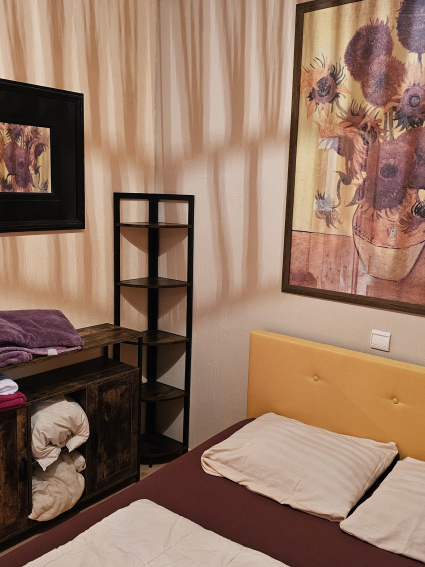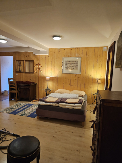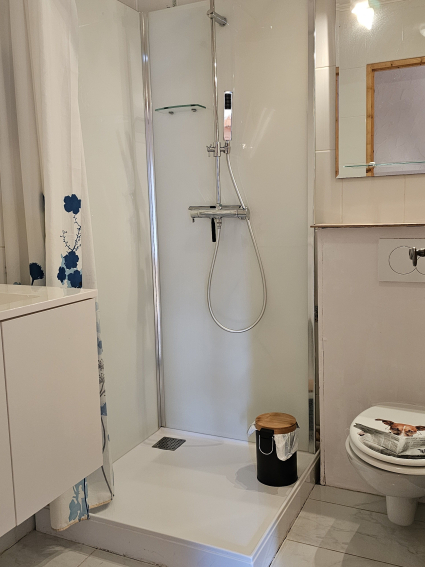 +1>>salon, deuxième cuisine, chambre double, toilettes et salle de bain, chambre double + 1 place, balcon. lits cliclac au Salon