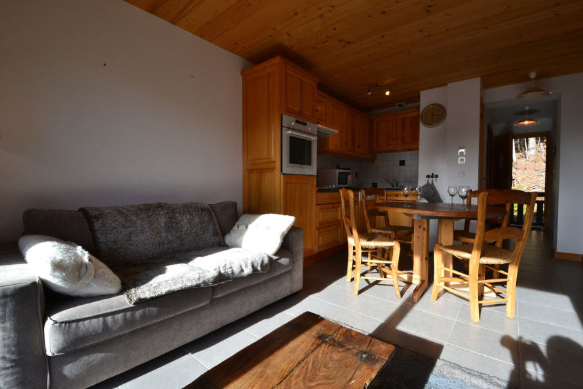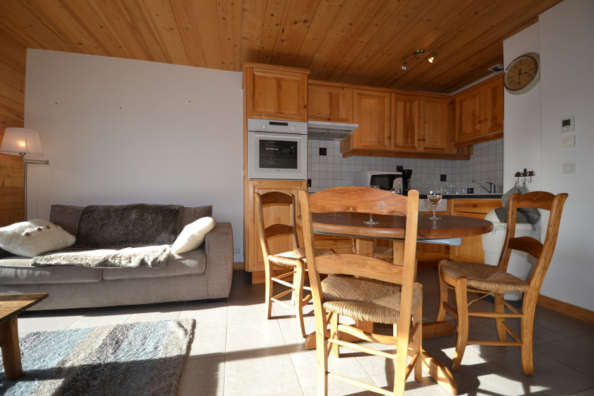 Appartement de 42m² pour six voyageurs situé au deuxième étage de cette résidence avec un balcon en exposition SUD offrant une superbe vue sur le Mont Charvin et la vallée.