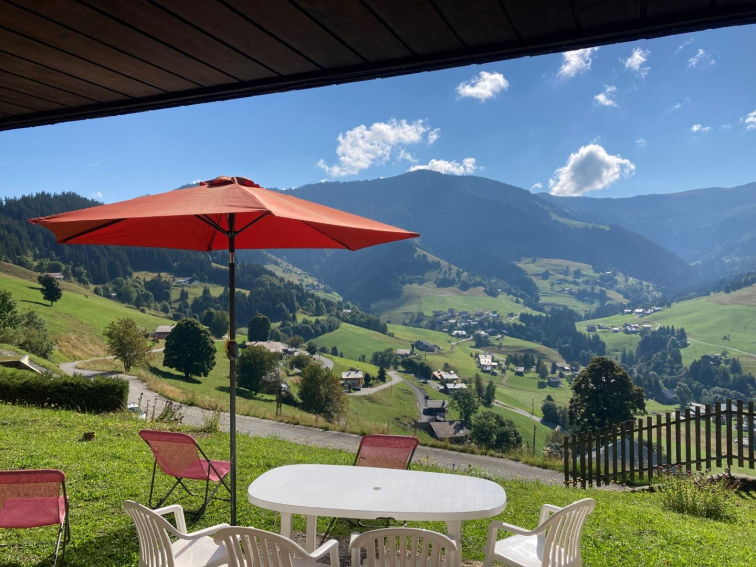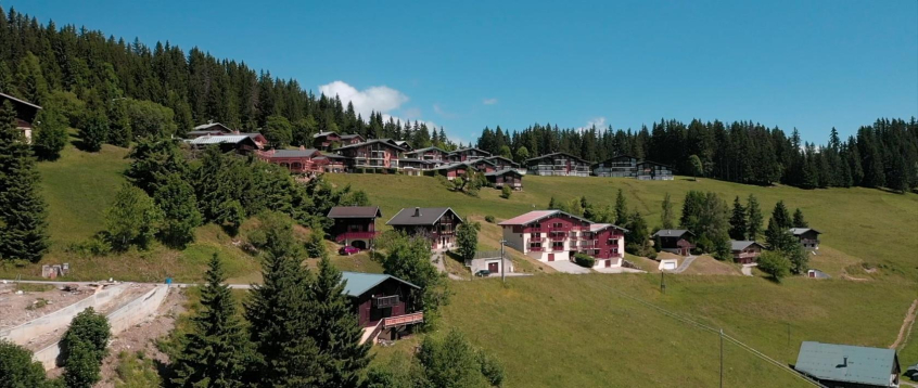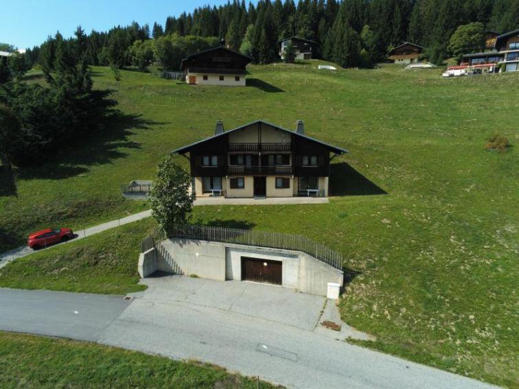 Situation : Lotissement Le Lachat, Epicerie, dépôt de pain, restaurant, location de matériel et pistes bleues de ski alpin (vers ND de Bellecombe et Flumet) à environ 700m.