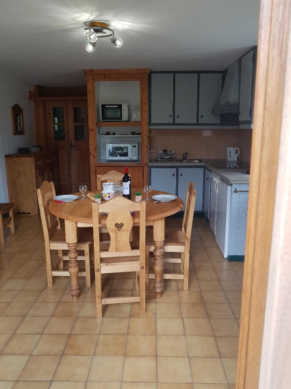 - Une pièce à vivre avec cuisine toute équipée ( lave vaisselle, plaques chauffantes, micro-onde, cafetière Senséo, appareil raclette…)