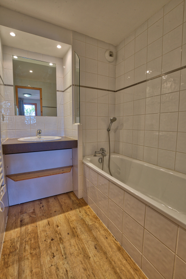 - Une salle de bain attenante à la chambre double, équipée d?une baignoire, meuble vasque et sèche serviette