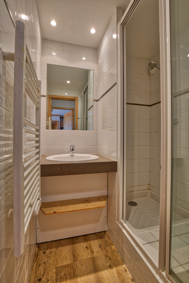 - Une salle d?eau avec douche, meuble vasque et sèche serviette