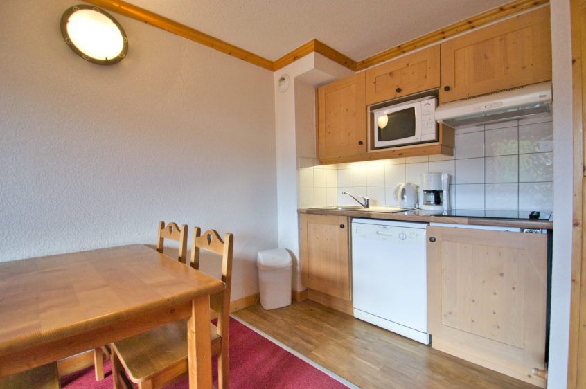 - Cuisine ouverte sur séjour : quatre plaques vitrocéramiques, réfrigérateur, micro-ondes, lave vaisselle.
