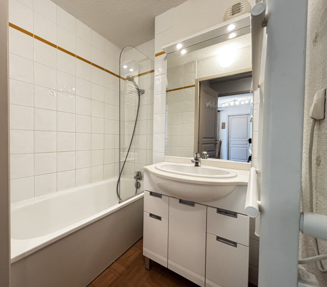 - Salle de bains avec baignoire.