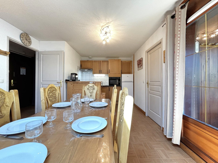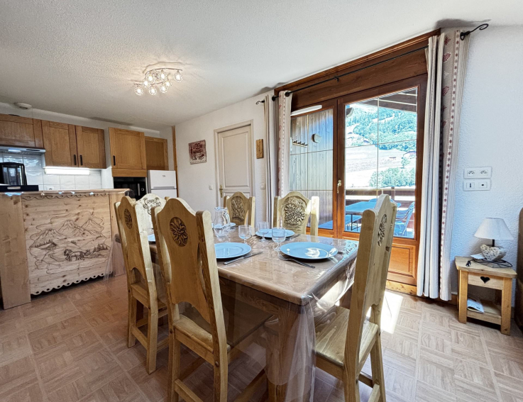 Appartement au pied des pistes de l'Espace Diamant pour six personnes au premier étage avec une grande terrasse de 10 m² offrant une belle vue montagnes.