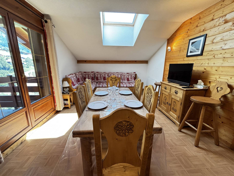 En été, vous profiterez de nombreux sentiers de randonnée et circuits VTT, accessibles dès la résidence. Le télésiège des Evettes, ouvert deux jours par semaine, permet d?accéder à des panoramas grandioses sur la chaîne des Aravis. Le plan d?eau de Flumet et sa base de loisirs, situés à 3 km, sont parfaits pour des activités en famille ou entre amis.