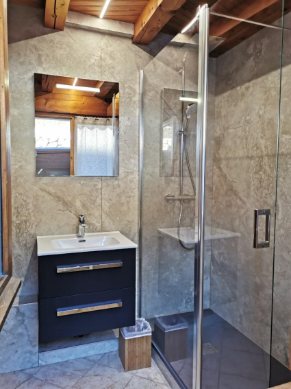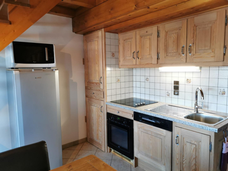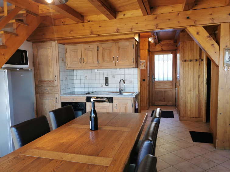 Appartement meublé tous confort. Spacieux dans un chalet en petite copropriété, un balcon exposé plein sud avec des transats.