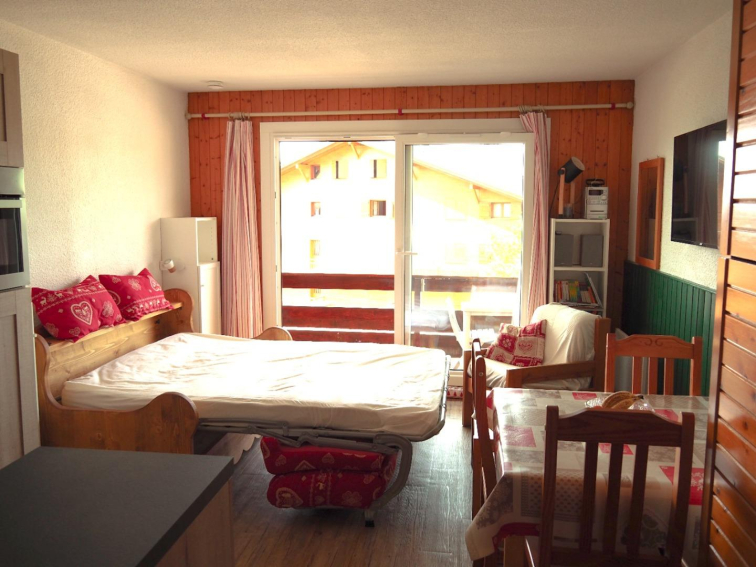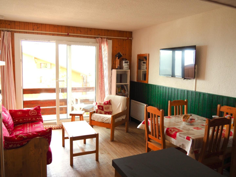 Studio cabine chaleureux de 25m², idéal pour 4 personnes, situé en plein cœur de la station, aux pieds des pistes.