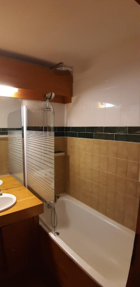 La salle de bain est équipée d'une baignoire, d'un grand sèche serviette, d'un sèche cheveux laissé à disposition des vacanciers. Les WC sont séparés.
