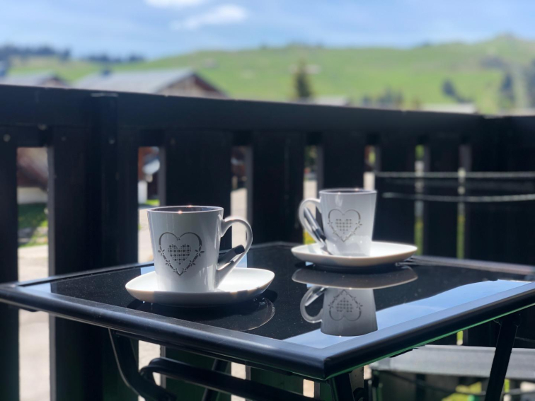 Dans une copropriété très calme, avec un accès au centre des Saisies à pied.