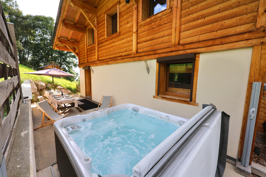 En extérieur terrasse, jacuzzi, transat, barbecue.