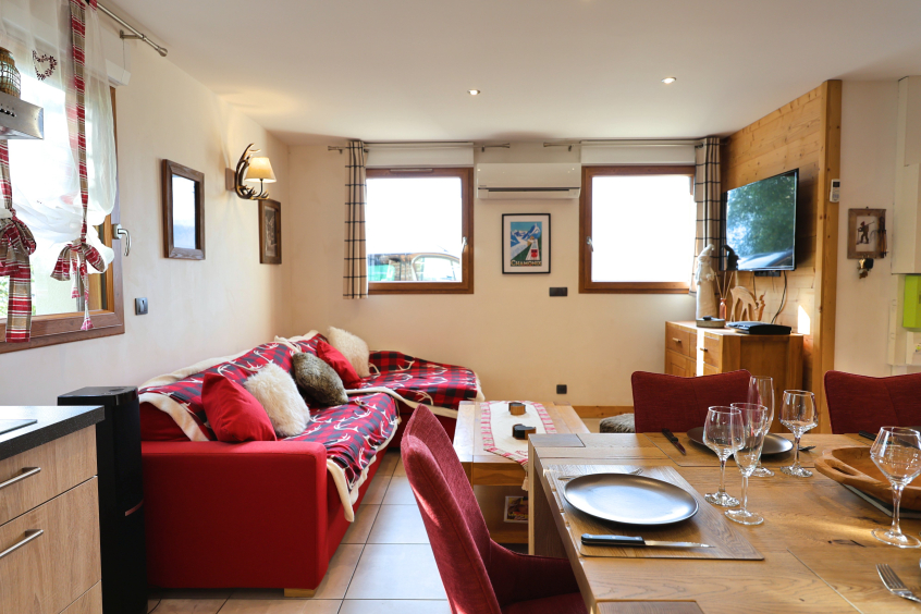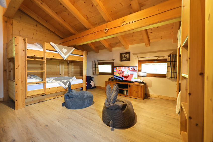 3 chambres doubles dont 1 avec TV à écran plat, 1 chambre dortoir avec 2 lits superposés + 1 lit de 90 avec TV à écran plat et play station 3, 3 salles de bains et 2 wc indépendants, sauna, wifi, balcon et terrasse avec une vue panoramique sur la chaîne des Aravis.