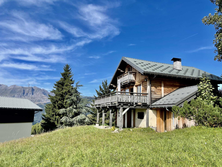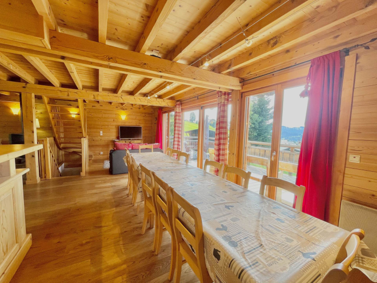 Chalet pour 15 peronnes d'une suface de 170m² répartis sur trois étages. Vous apprécierez ses deux balcons et sa terrasse sud-ouest offrant une vue exceptionnelle sur le massif des Aravis, le Mont Charvin et la vallée.