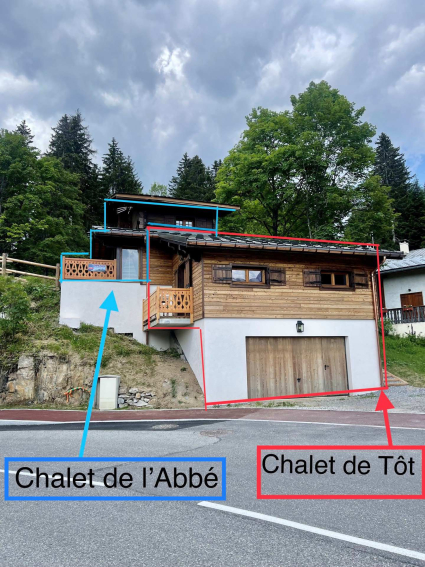 Chalets mitoyens composé d'un chalet entièrement rénovée en 2022, et d'un chalet neuf, est situé sur la route entre le village de Crest-Voland et Le Cernix, à 600m du pied des pistes de l'Espace Diamant et de l'école de ski.
