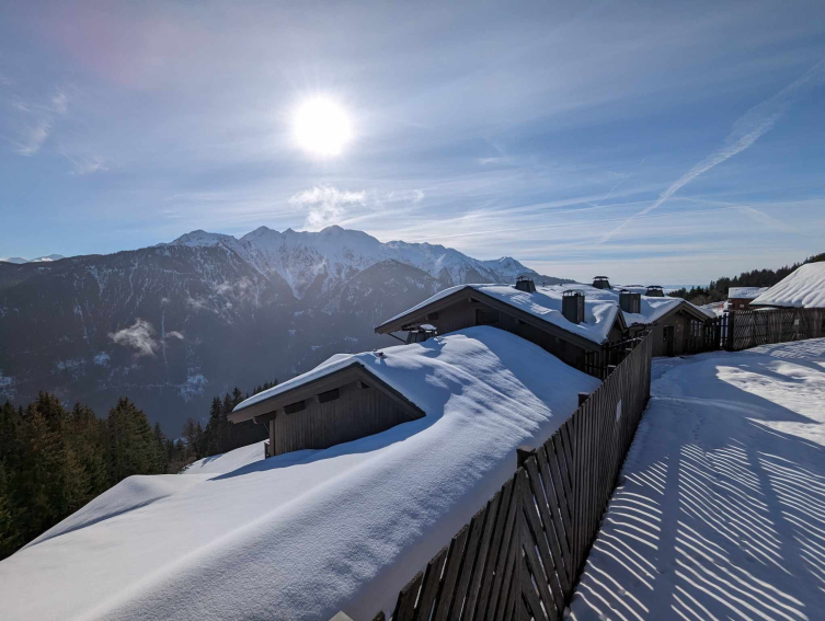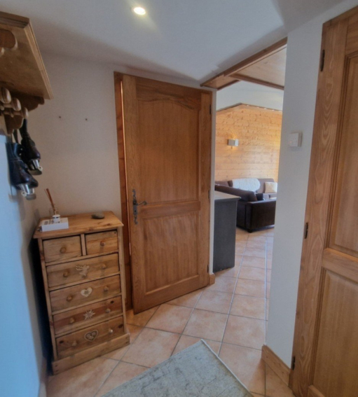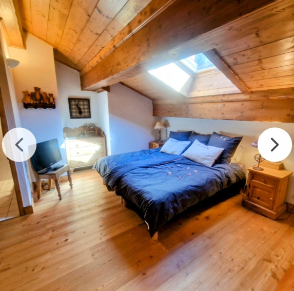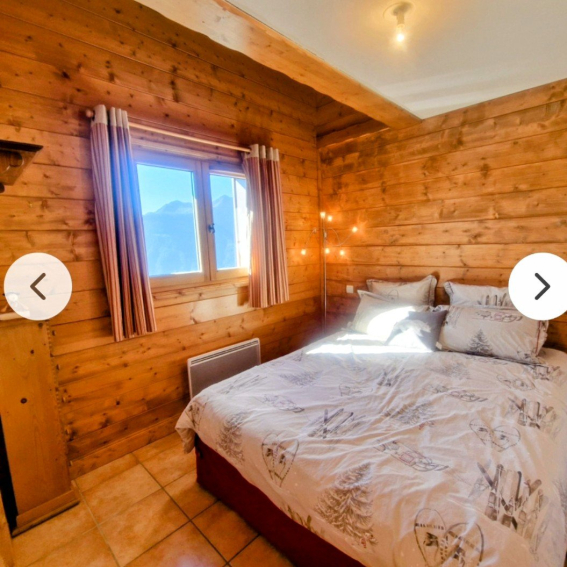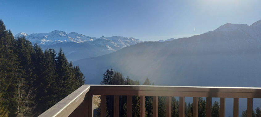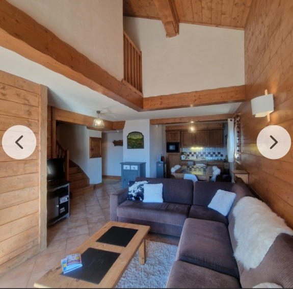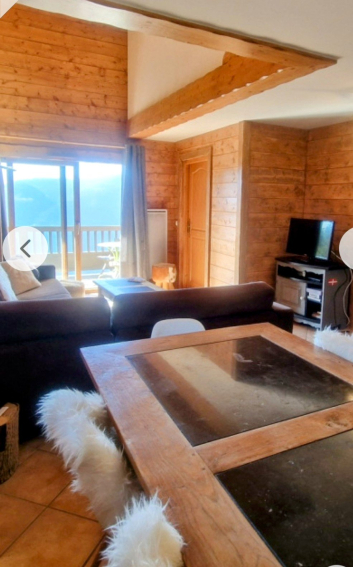 Dans chalet de standing en bois récent MGM, appartement de 80 m2 en duplex, décoration soignée, meubles savoyards, balcon sans vis à vis avec exposition SUD, et vue imprenable sur le Beaufortain (180°)