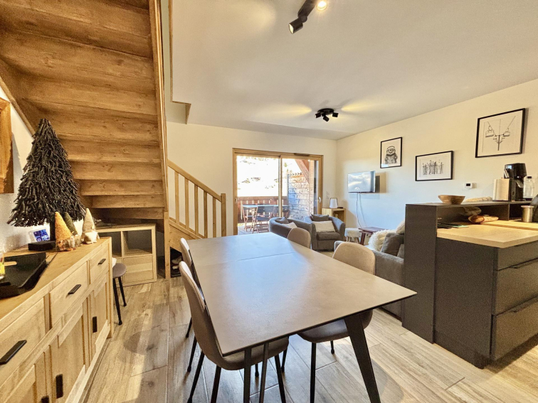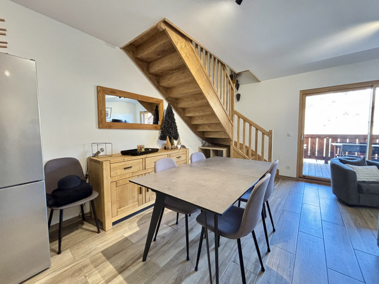 Appartement récent en duplex d'une surface de 55 m² pour 4 à 6 voyageurs, situé au 2ème et 3ème étage d'une résidence avec ascenseur. Ce dernier comporte deux terrasses en exposition Nord Ouest avec vue sur le Mont Charvin et les montagnes environnantes.