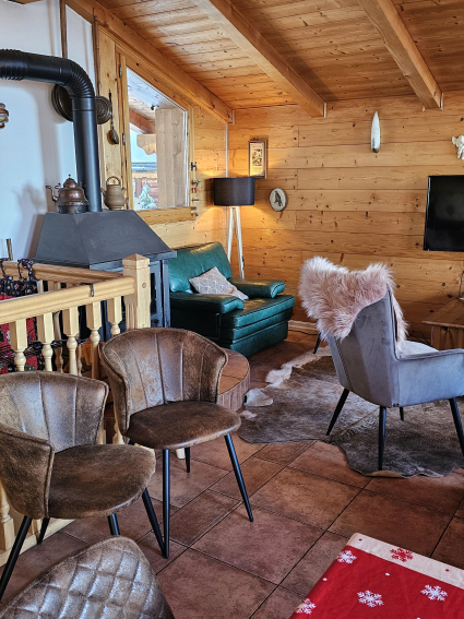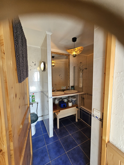 Grand parking de 5 places.Grand appartement de 180m2,R de ch Entrée, Hal, porte vers le local à ski , ,porte vers salon, hall toilette , Grand Salon avec cuisine Americaine très bien outilées.85m2,cheminée,Balcon, vue imprenable.WIFI,escalier vers l'étage.