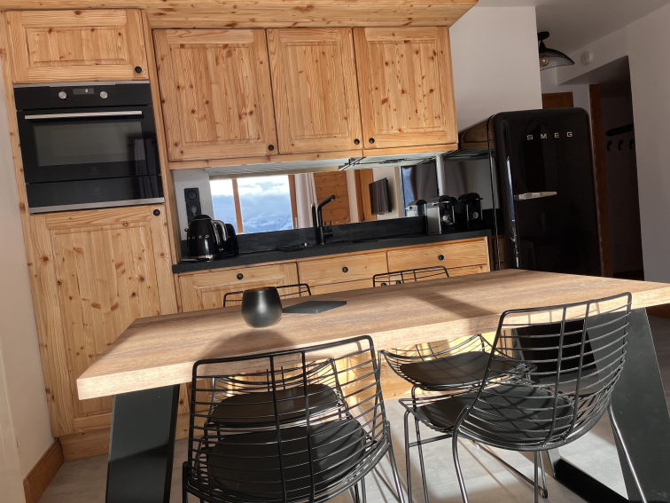 Un grand séjour/cuisine orienté sud avec vue imprenable sur le Beaufortain et le Mont Blanc