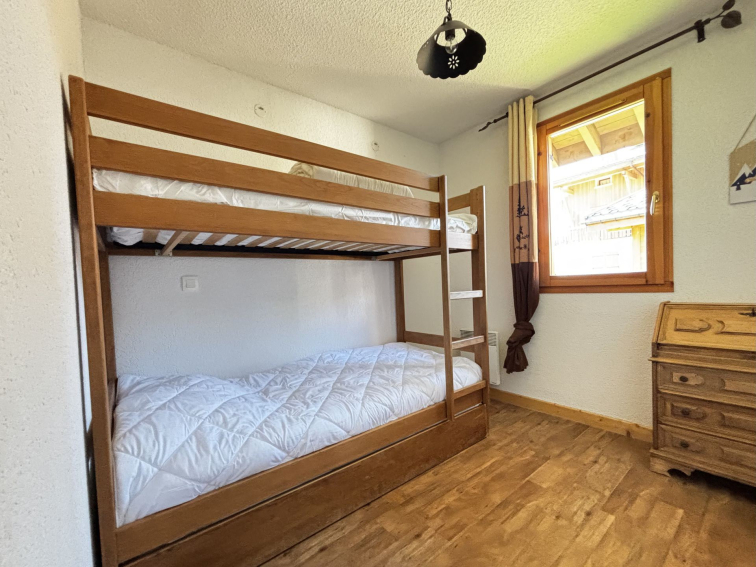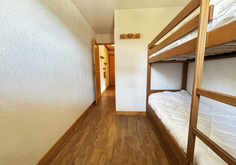 Une première chambre comprenant un lit superposé 2*90 cm + un lit tiroir 1*90 cm et rangements