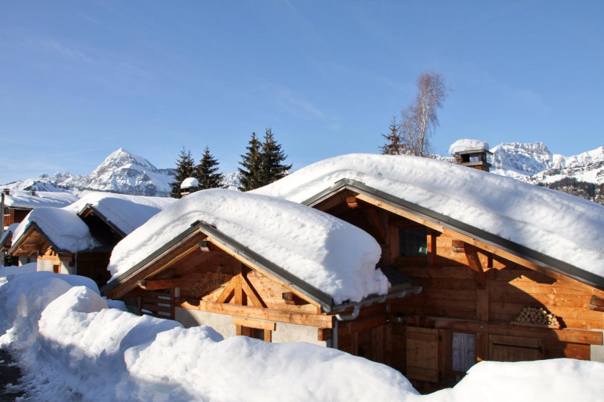 Chalets confortables ; superbe vue sur le massif des Aravis, chalet au calme avec piscine semi-privée l'été et grand champ de luge l'hiver, à 500m de toutes les commoditées (10 mn à pied).