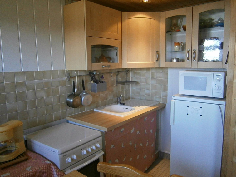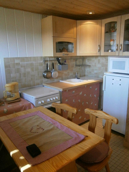 Étage : 2 chambres (lits 2 places), grand séjour avec balcon, belle vue, salle d'eau, wc. Tout confort : 2 TV, 2 micro-ondes, lave-vaisselle, 2 réfrigérateurs, 1 congélateur, 2 fours. Lit bébé + chaise haute.