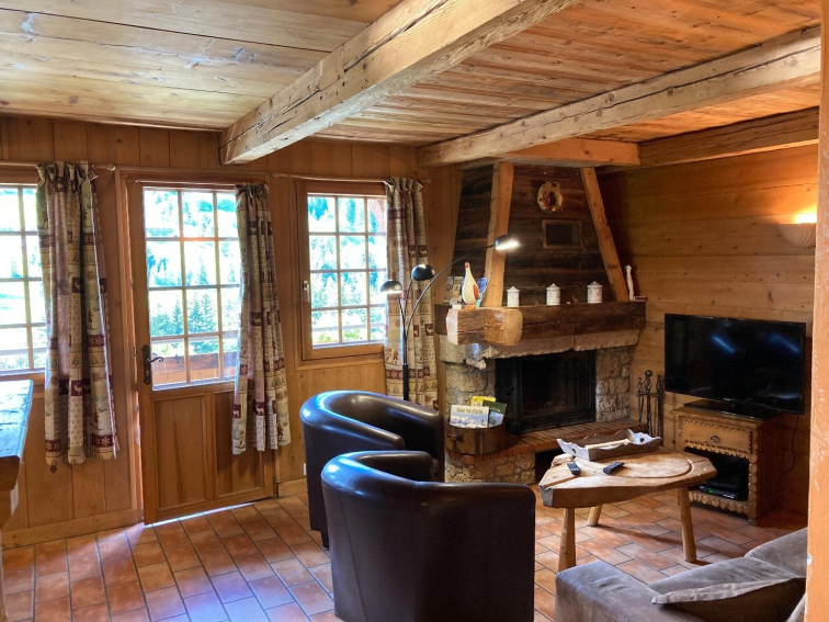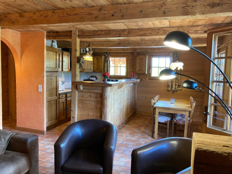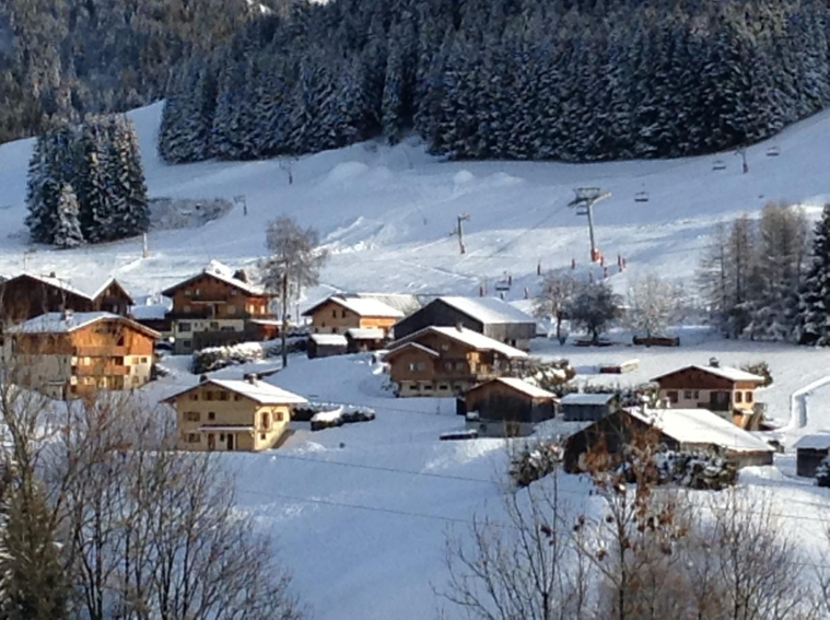 Dans une ferme rénovée, décoration intérieur en vieux bois, pistes <1km, arrêt navette. grande terrasse d'environ 40m²