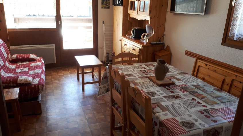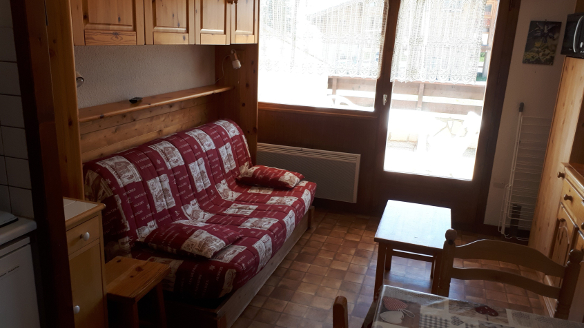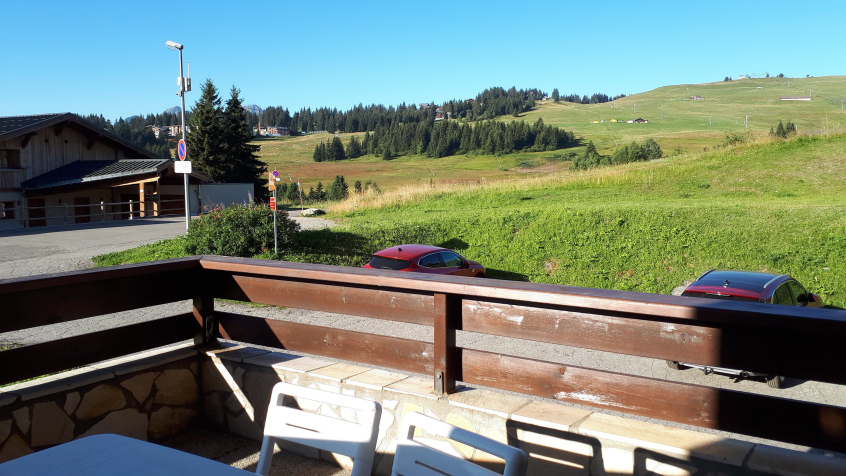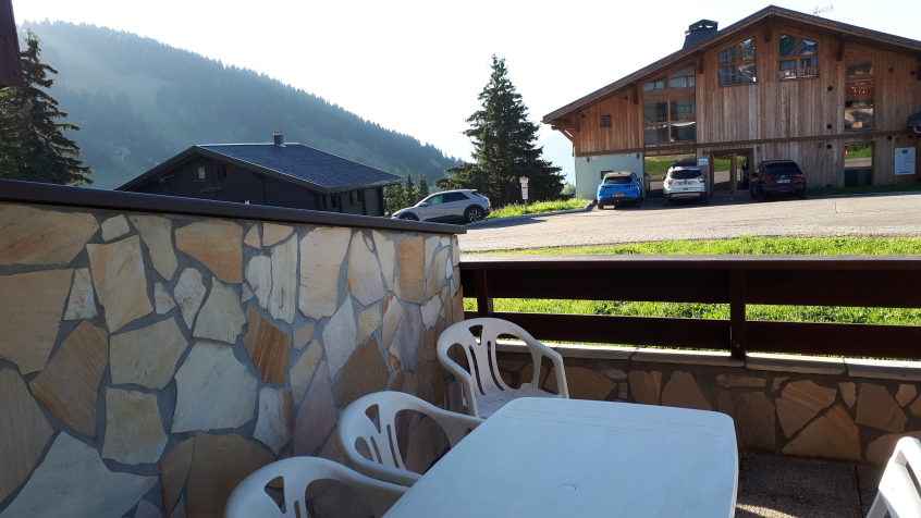 Accès tous commerces et centre station à pied, terrasse environ 12m2 belle vue sur la montagne proximité des pistes départ sur télésiège