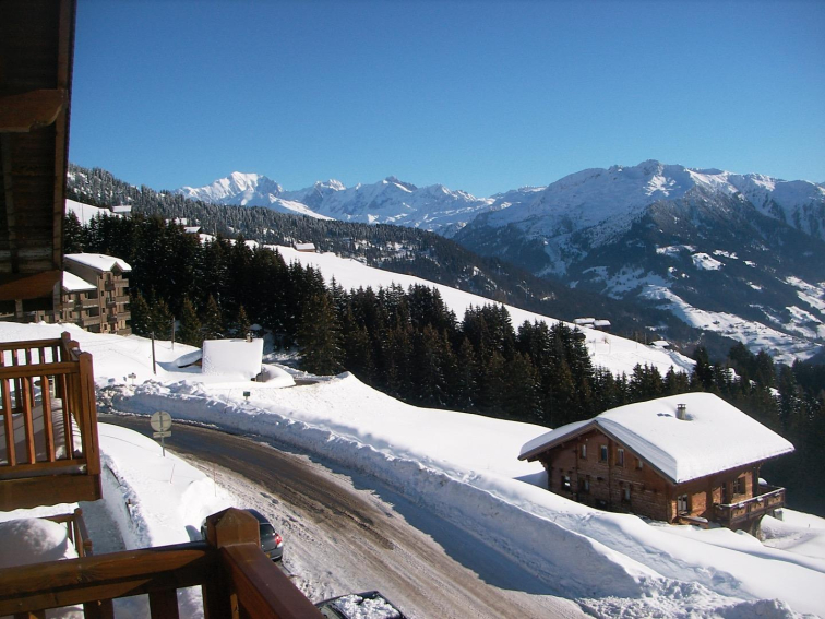 appartement MGM avec vue panoramique sur montagne; balcon plein sud ; 3 chambres lit double ;1 mezzanine avec canapé lit gigogne ; 2 salles d'eau (douche) et 1 WC; parking couvert avec acces direct sans sortir dehors
