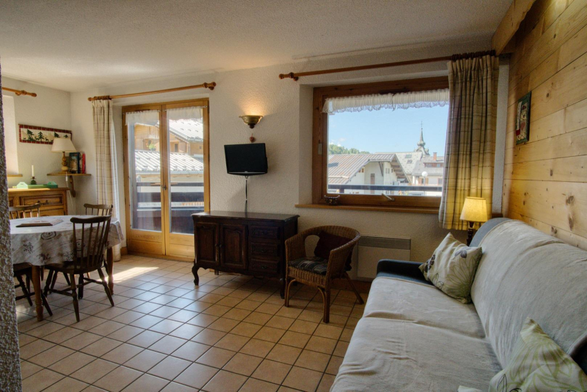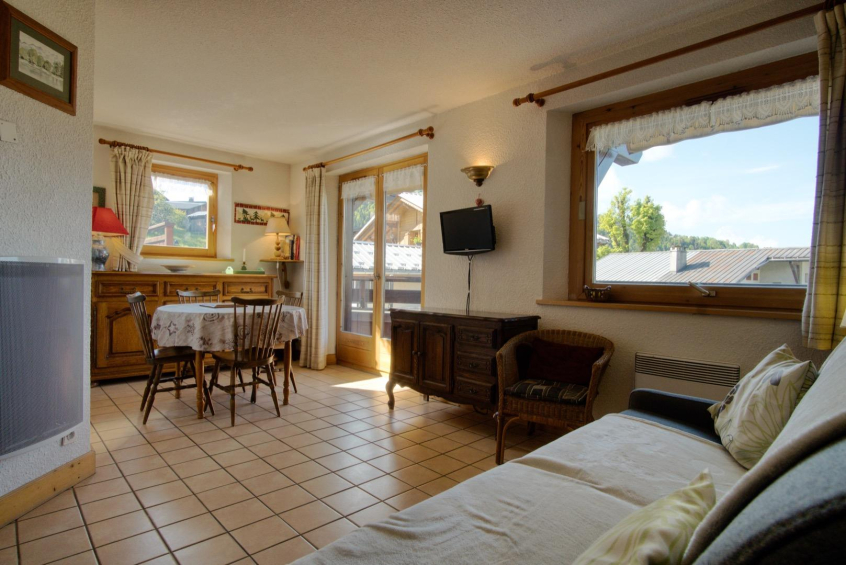 BEL Appartement de style savoyard dans la station village de Notre Dame de Bellecombe au coeur de L'ESPACE DIAMANT, au calme et en plein centre ! Refait à neuf, avec plusieurs équipements électromenager neufs. Belle orientation sud-sud ouest, avec grand balcon. Accès tous commerces à deux minutes. A 50 metres du départ des pistes (forfaits, Magasins de sports, office du Tourisme) et de l'école du Ski Français.