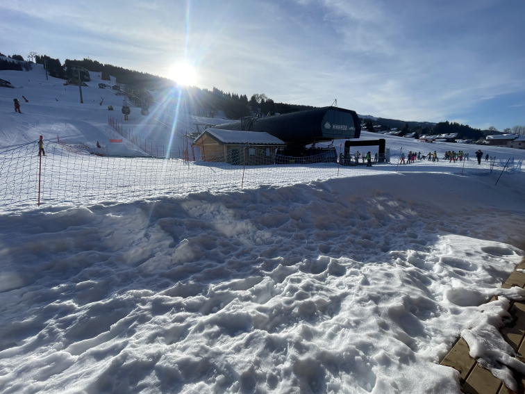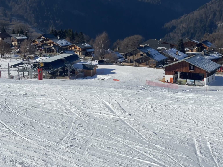 * au PIED DES PISTES. A 20m de la télécabine menant à l’ESPACE DIAMANT (192km de pistes). A 30m du départ des cours de ski ==> Neige quasiment assurée jusqu’au chalet !