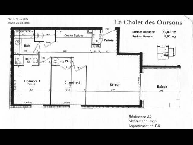 L'appartement est très bien entretenu avec des prestations de grande qualité (ameublement montagnard, boiseries). Il se situe au 1er étage avec un balcon donnant de plain pied sur l'extérieur.